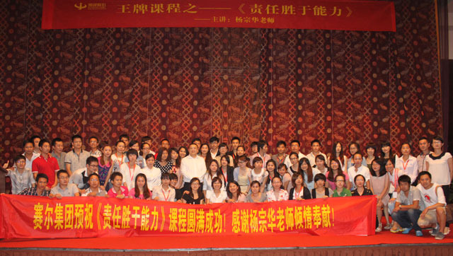 賽爾網(wǎng)訊 8月24日,經(jīng)過集團(tuán)人力資源部悉心準(zhǔn)備與精心組織,賽爾集團(tuán)寧波總部和義烏總部共74人,在義烏市東陽(yáng)海德酒店聆聽了聚成集團(tuán)商學(xué)院院長(zhǎng)楊宗華老師題為《責(zé)任勝于能力》的管理培訓(xùn),其中有28人是集團(tuán)2011年末和2012年中提干的中層管理人員。