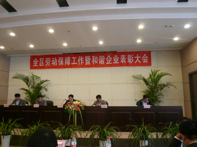 4月29日上午,集團人力資源代表參加了在保稅區創業大廈召開的全區勞動保障工作暨和諧企業表彰大會。會議由保稅區管委會徐紅副主任主持,保稅區管委會各相關負責人參加了會議。