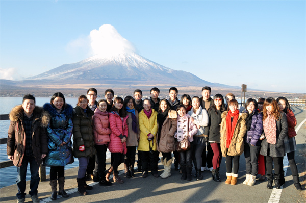 優(yōu)勝國貿(mào)一行24人在富士山腳下合影留念。