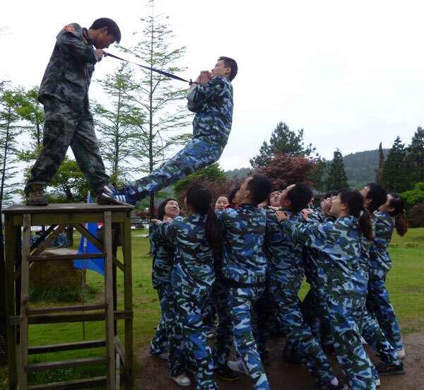 開班前,教練通過了一系列的歡快活動,把全體成員分為五隊(鷹之隊、屠龍隊、步步隊、牛哄哄隊、如意隊),參加了信任背摔、七巧板拼圖、盲人方陣、高空行走、接力傳遞球和凌空擊鼓等活動。經(jīng)過激烈的比賽,強烈意識到:成功必須鍛煉意志和培養(yǎng)團隊協(xié)作的品德情操。如高空行走時每個成員必須膽大心細,敢于挑戰(zhàn),相互鼓勵,戰(zhàn)勝恐懼;而凌空擊鼓講究的是同心協(xié)力,要有團隊協(xié)作精神、要有絕對服從的思想、要有顧全大局的理念。