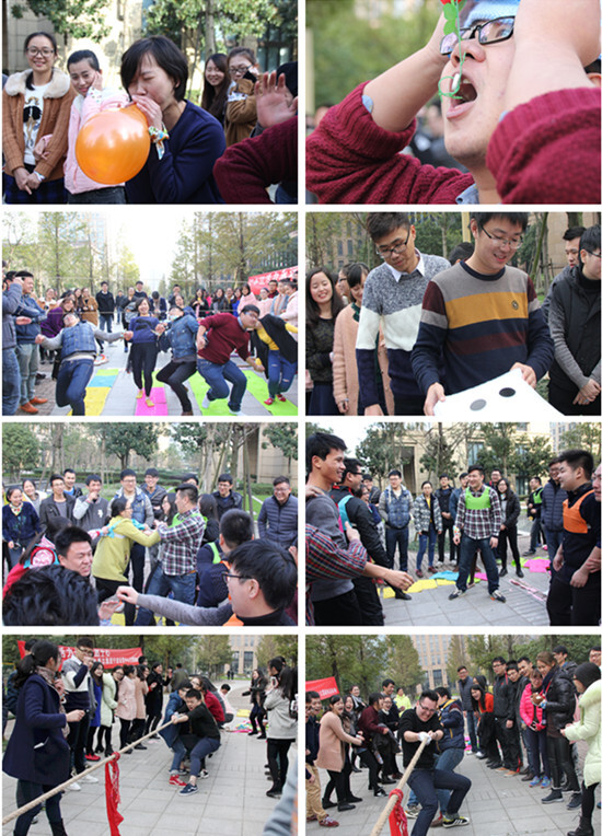 本次運(yùn)動(dòng)會(huì),寧波分會(huì)場(chǎng)以“ 讓年輕活力永遠(yuǎn)躍然于心”為主題,設(shè)置了豐富的團(tuán)體項(xiàng)目,既有當(dāng)下流行的指壓板接力賽、撕名牌大賽,也有充滿懷舊色彩的跳房子和拔河比賽,童年記憶與流行元素的交織融合,碰撞出別樣的精彩火花。義烏分會(huì)場(chǎng)同樣以青春為主打,提出“運(yùn)動(dòng)無(wú)限 樂(lè)嗨青春”的口號(hào),除了彰顯合作精神的團(tuán)體項(xiàng)目,還有不少體現(xiàn)青春活力的個(gè)人比賽,包括“歡樂(lè)袋鼠跳”、抖乒乓球、百米沖刺、企鵝漫步、五人六足等項(xiàng)目,或緊張激烈,或妙趣橫生,使略顯枯燥的工作增添了不少樂(lè)趣和活力。