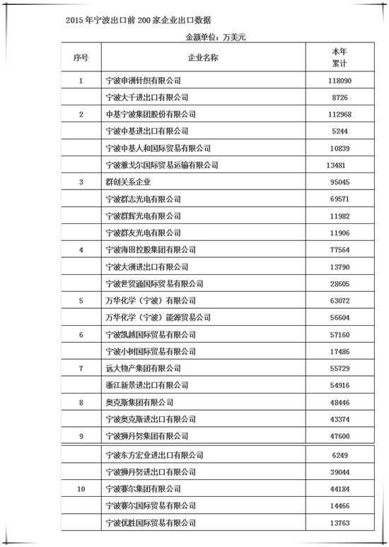 賽爾網訊 日前,寧波市商務委發布2015外貿200強榜單,賽爾集團以4.4億美元出口總額(不包括集團在寧波市外注冊企業數據)列寧波市出口企業第十位,比2014年度排名上升了4位。同時集團在義烏注冊企業業績也是齊頭并進,優訊、優鼎、優賽、優貿等子公司總出口額超億美元,繼續實現穩步增長,位居義烏一般貿易出口企業前列。