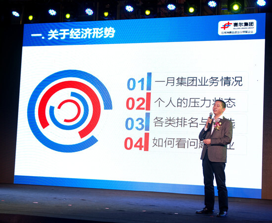 表彰結束后,徐平炬總裁向全體與會同事分享了他一年來的所思所悟。徐總從當下經濟形勢入手,在企業家精神、公司競爭力、品牌傳播與自媒體建設、投資布局、薪酬結構、互聯網影響等方面作了簡明扼要的闡述。雖然外貿行業面臨嚴峻形勢,但賽爾集團仍然在2015年實現了穩健發展,2016年1月份更以近7000萬美元創下月度出口額歷史新高,對于2016年企業發展,有壓力但更有信心。徐總說,每個企業都需要敢為人先、勇于開拓、能擔當的企業家精神,當前集團各子公司總經理都是行業認可的優秀企業家,各子公司業務部門負責人在某種意義上也是企業家,賽爾集團還要在內部培養出更多具有企業家精神的團隊領導者,從而推動企業的長遠健康發展。當前,集團競爭力主要體現在獨特的經營模式、綜合的軟實力、集團化的高效運作和較強的行業影響力,這種差異化的競爭力仍需堅持并進一步鞏固提升。徐總表示,近年來集團先后投資成立了優貿供應鏈、環宇港通和優游國旅,探索了出口跨境電商B2C業務,搭建了在線外貿商務平臺“賽爾在線”,下階段將著手布局進口跨境電商B2B業務,這些投資都是圍繞外貿主業所作的延伸布局和有益探索,這些投資和布局必將進一步提升集團的外貿綜合服務能力。徐總還與大家分享了互聯網對當今這個時代和企業發展影響的看法,并建議大家低配人生和物質要求,努力工作,提升自己,跟上公司發展的步伐,在上升通道中實現人生的追求。