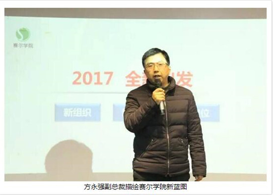 當優秀講師和優秀學員們領回先進證書,賽爾學院2016年工作也完美落下帷幕。新的一年悄然而至,在頒獎儀式上,方永強副總裁為大家描繪了2017年賽爾學院的新藍圖。他說,2017年是賽爾學院全新出發的一年,主要體現在三個新:新機構、新體系、新定位。從現在開始,賽爾學院不再是企業內部的虛擬培訓平臺,而是隸屬于人力資源部的實體內訓機構,由人力資源部原培訓組和綜合行政部原企業文化組的6位同事組成,方總親自出任賽爾學院負責人。