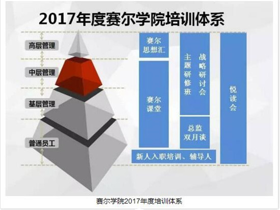 學院將在整合現有培訓課程的基礎上,引入新的板塊和項目。今后,學院既有相對高端、面向外貿相關行業的優秀企業家的“賽爾思想匯”,有面向集團及各子公司合伙人的“戰略研討會”,有圍繞特定對象、特定主題進行深度研修的“專題研修班”等板塊,又有重點服務中基層同事的“賽爾課堂”、“總監雙月談”、“悅讀會”等培訓分享項目。此外,學院還將加強與同行企業內訓機構、本市高校國貿類院系的交流互動,擴大學院的社會影響。