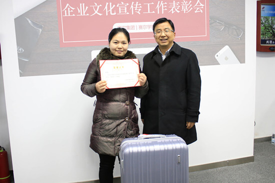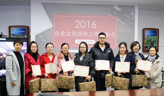 2016年是集團企業(yè)文化宣傳工作扎實推進的一年。各子公司、各部門向集團季刊、中英文月報、周報、網(wǎng)站、微信等自媒體累計投稿486篇,總計40余萬字,全年共刊發(fā)《賽爾志》4期、中英文月報各12期、賽爾周報52期、完成“賽爾人”稿件55篇,順利完成企業(yè)英文網(wǎng)站改版。因文化宣傳工作表現(xiàn)出色,賽爾國貿、綠時進出口、優(yōu)景進出口、優(yōu)勝國貿榮獲2016年度“企業(yè)文化宣傳先進單位”稱號,賽爾國貿傅麗君、優(yōu)訊進出口俞飄飄等5人被評為“企業(yè)文化宣傳先進個人”;優(yōu)景進出口歐陽圓圓、倉儲物流部鄭曉亭等摘得年度“優(yōu)秀通訊員”獎項;賽爾國貿傅麗君還憑借對文宣工作的責任、熱愛和扎實的寫作功底,成為2016年度《賽爾志》優(yōu)秀欄目編輯。會場上大家用熱烈的掌聲,為所有積極參與文宣工作的小伙伴拍手叫好。