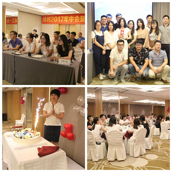 會(huì)議回顧了綠時(shí)上半年各部門的出貨及各項(xiàng)指標(biāo)完成情況,大家對(duì)工作中遇到的問題也進(jìn)行了深入交流。晚宴開始后,大家齊唱生日歌,一起慶祝GREEN TIME的一周歲生日,三位七月的壽星同謝總一起切蛋糕。在陳為的一曲《喜歡你》中結(jié)束了本次年中會(huì)議。祝福綠時(shí)越來越好,也希望大家一起努力,共創(chuàng)輝煌!