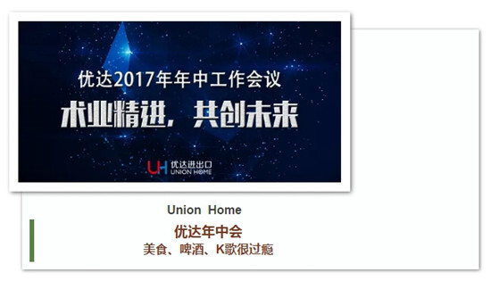 7月29日下午兩點(diǎn),優(yōu)達(dá)在義烏三鼎開元名都大酒店舉行了年中會(huì)議,優(yōu)達(dá)全體伙伴參加了本次會(huì)議。會(huì)議公布了上半年度的業(yè)績(jī)情況,銷售額連續(xù)3個(gè)月打破歷史記錄,嘉獎(jiǎng)了6月份及第二季度獲優(yōu)團(tuán)隊(duì),同時(shí)也分析了工作中存在的不足。會(huì)后,大家相聚露天大排檔,感受涼涼夏夜里的美食、啤酒與激情的碰撞。隨后,大家轉(zhuǎn)戰(zhàn)KTV,感受伙伴們工作之外的鐵漢柔情。
