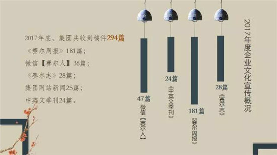 徐總對2017年集團企業(yè)文化宣傳工作成績給予充分肯定(鼓掌),他強調,要做好企業(yè)文化宣傳工作,核心基礎是做好企業(yè)文化建設工作,只講業(yè)務發(fā)展不講文化建設的企業(yè)是干燥、無趣、沒有活力的,企業(yè)文化也是生產力,企業(yè)規(guī)模越大越要重視企業(yè)文化建設。企業(yè)文化建設重在內涵提升,它能培養(yǎng)并反映出一個優(yōu)秀企業(yè)的良好氣質,要通過創(chuàng)新性的、體現良好趣味的企業(yè)文化平臺載體和活動策劃,深度挖掘、提煉有價值的文化內容,輔之以生動的文化宣傳,吸引賽爾伙伴們參與其中,感受樂趣,增強歸屬感。希望賽爾伙伴們在專心做好業(yè)務的同時,也積極參與企業(yè)文化各項活動,讓賽爾成為有獨特文化魅力和活力的有機企業(yè)。