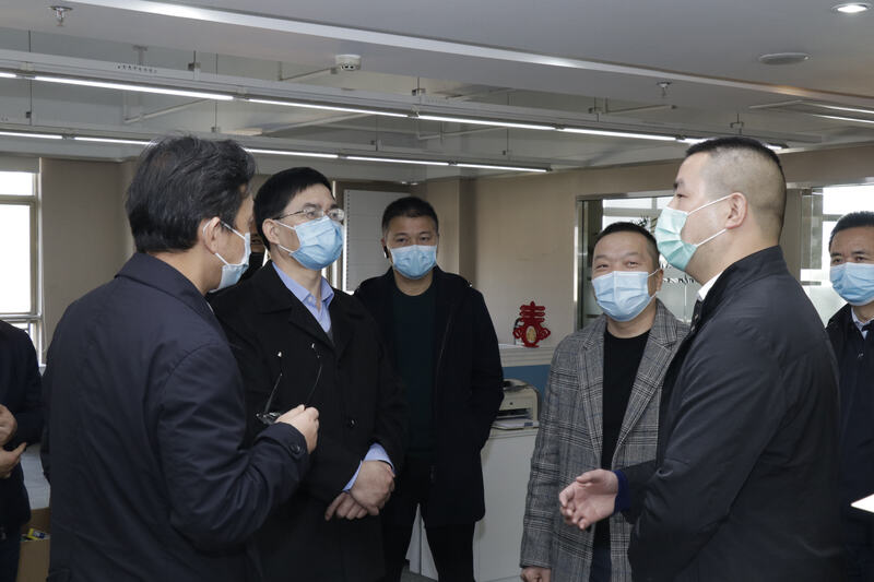 陳龍書記一行實地察看了臨時隔離室、員工餐廳和防疫物資儲備,龔江民副總監簡要介紹了集團疫情防控方案。集團嚴格按照國家、省市各級政府要求,成立了以集團董事長為組長的疫情防控工作領導小組,抽調管理骨干,認真落實人員信息登記、復工人員核查、環境衛生管理、防疫知識教育、應急預案處置等工作,確保員工身體健康和復工安全有序推進。陳龍書記一行對企業采取的各項防疫措施表示贊許。