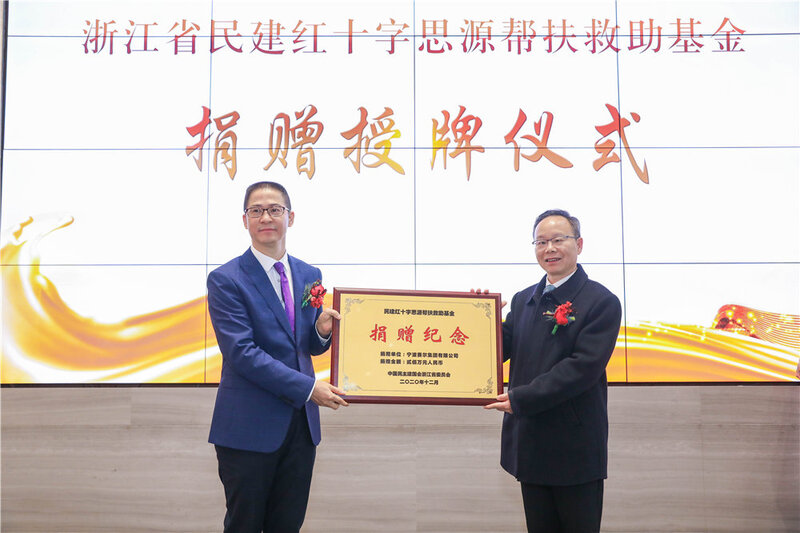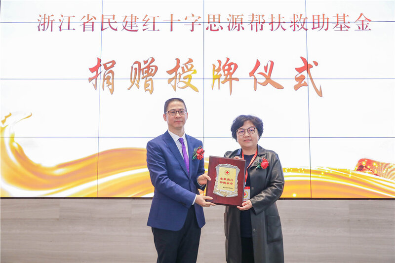 借此機會,賽爾集團向浙江省民建紅十字思源幫扶救助基金捐款200萬元,浙江省政協副主席,民建浙江省委會主委陳小平和浙江省紅十字會黨組書記、專職副會長陶競分別授予徐平炬董事長捐贈和功德牌匾。