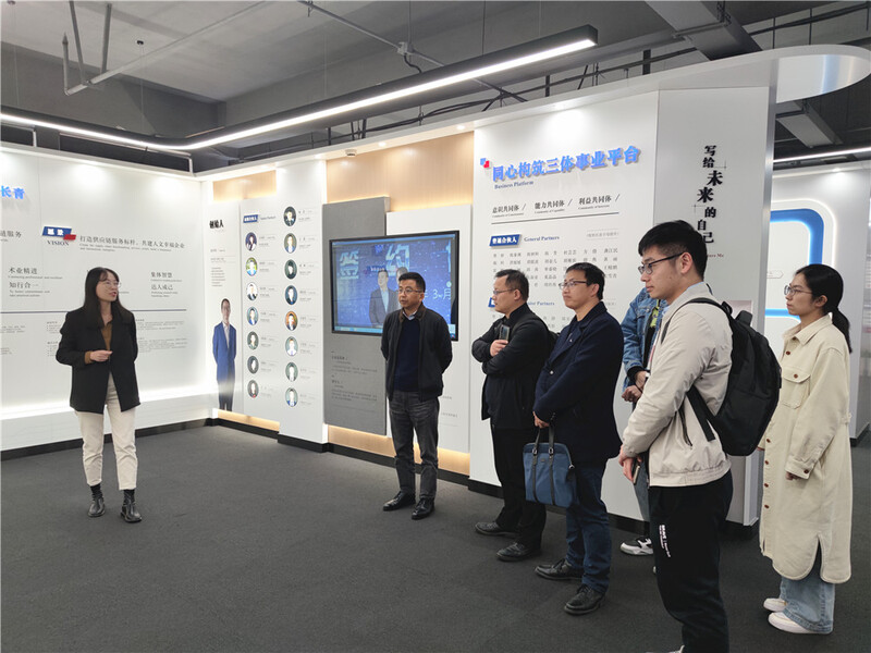 師生一行參觀了集團文化展廳,了解了賽爾發展史、業務布局、企業文化建設工作等,并參觀了3樓集團樣品間,對賽爾涉及的產品有了具象的認識。隨后一行人參觀了辦公區、會議區、休閑區等,老師與同學一致表示,賽爾業務增長喜人,組織建設和文化建設領先,工作環境優良,是一家很有實力的好企業,希望與賽爾加強合作,探索更多的合作方式,擴大合作成效。
