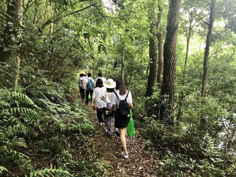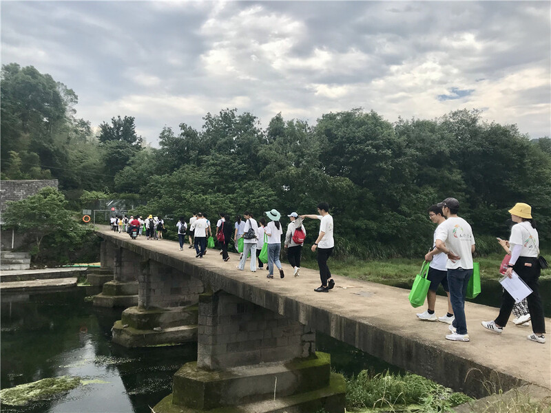 上午9點半抵達活動點,工作人員為大家分發了活動“裝備”——綠色環保袋和長柄架,隨后由用人部門領隊,分三個小組依次進入鄞江古道。同學們一邊走一邊將路邊的垃圾撿入環保袋中。由于前一晚的大雨,山路崎嶇泥濘,道路積水濕滑,大家相互幫助,“一步一個泥印”走完了全程。在終點合影留念后,乘坐大巴車前往午餐地點。