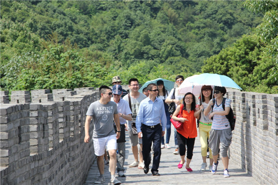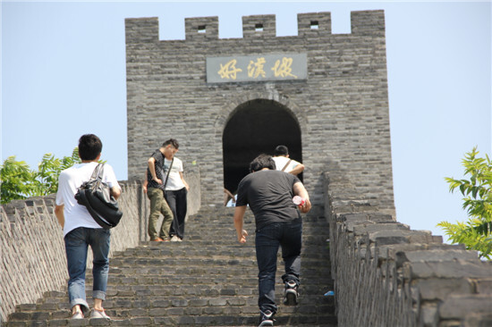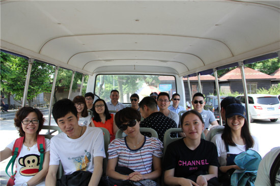 太陽(yáng)鏡,遮陽(yáng)傘,防曬霜,想必大伙都一樣不落了。5月25號(hào),賽爾國(guó)貿(mào)(寧波運(yùn)營(yíng)中心)19人的大隊(duì)伍,在徐總的帶領(lǐng)下,來(lái)到了寧波奉化黃賢森林公園,開(kāi)始挑戰(zhàn)氣勢(shì)雄偉的海上長(zhǎng)城!整理隊(duì)伍準(zhǔn)備出發(fā),這第一個(gè)挑戰(zhàn)就來(lái)了。原來(lái),從各位下車點(diǎn)到海上長(zhǎng)城的起點(diǎn),要經(jīng)過(guò)一段陡峭的山坡。大伙考慮到今天的主要任務(wù)是“不到長(zhǎng)城非好漢!”,所以就安排坐特制觀光bus上山!