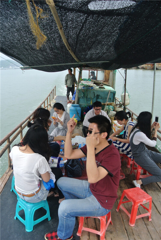 到了船上,大家首先將隨身帶來的水和零食擺放出來