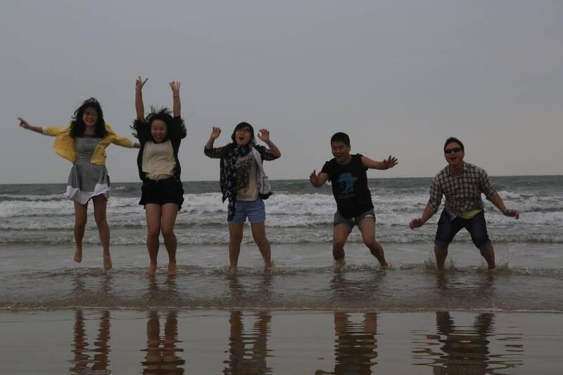 接下來(lái)是海濱浴場(chǎng),脫掉鞋子零距離的接觸大海,感覺(jué)太high,瞧這群孩子是不是瘋了?各種雷人的姿勢(shì),各種開(kāi)懷的笑容!