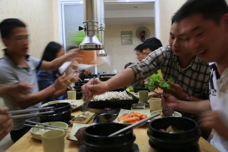 下車了,到站了,韓國(guó)烤肉果斷走一個(gè),席地而坐,吃著泡飯,烤著肉,感受著淡淡的韓國(guó)風(fēng)情——一天的行程又要結(jié)束了!