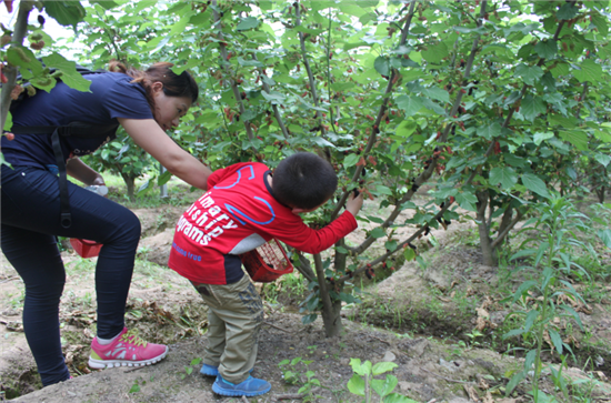 最后,大家集體去采摘桑果,每個小朋友都親自采摘滿滿的一籃。