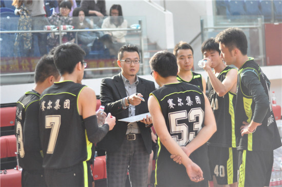 趁著中場休息,趙總在現場認真指導下一場的戰術