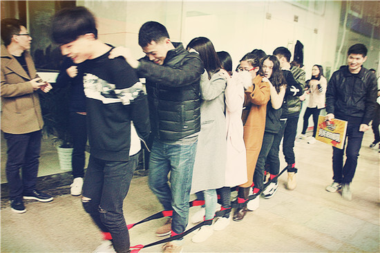 指壓板接力賽被冠以“不愿回憶之痛”的稱號,在一陣鬼哭狼嚎中,雙人合跳跳繩、旋轉(zhuǎn)的呼啦圈、忍痛背著妹子奔跑著的“猛男”、團隊首尾相接組成的人體長龍輪番上演,為這項游戲打上了痛并快樂著的標簽。
