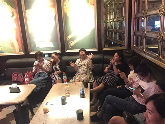 下午五點,大部隊前往夏威夷海鮮自助酒店,來一場適合發朋友圈的晚餐。我們為不能吃海鮮的莎莎計算要吃多少個哈根達斯才能回本,食物中毒的松哥只能看著我們大口吃肉然后默默喝粥,還發現了能吃幾盤海鮮+超大塊牛肉+N多水果的五部大胃王——周曉東同學。最后,秉著不能浪費食物的我們,開始了繞口令游戲,說錯的就要吃一筷子,不多會兒,桌上的菜就在灰化肥、紅鯉魚、八百標兵中全部消滅光了。
