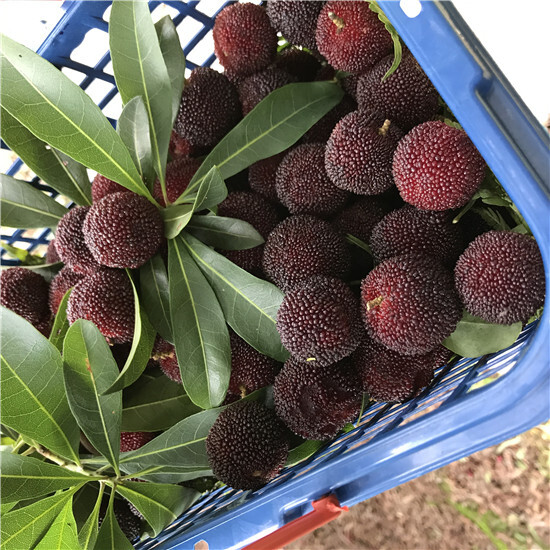 上午10點,我們一行17人驅車抵達余姚梁弄的邱家楊梅基地。放眼望去盡是漫山的楊梅樹,小伙伴們一下車就立馬迫不及待地提籃上山,采摘楊梅。枝頭一顆顆紅得發(fā)紫的楊梅,甜中帶酸,刺激著每個人的味蕾。大家一邊摘一邊吃,籃子里始終滿不起來。很快大家被楊梅填滿了肚子,索性也不摘了,直接到山下選一籃專業(yè)師傅摘得黝黑黝黑的楊梅。