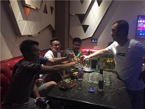緊接著,兩地同時拉開了唱歌party序幕。全場首先由美女盧依開嗓,她一曲《月亮之上》調動了現場氣氛,大家都嗨了起來,一起跟著鼓掌與歡呼。放眼全場,everybody都是麥霸,每個人都擁有自己獨特的音色,極富感染力。在熱唱的氛圍中,優越七部總監鯤鵬哥也來到現場,為愛樂社加油助威,現場演繹了一首經典曲目《兄弟別哭》。與此同時,觀看直播的人數也蹭蹭上漲,直播間里驚現“鯤哥迷妹”等小粉絲留言,紛紛表示唱得太棒了。截止下午四點,義烏方面直播人數突破一百人,社長胡波兌現承諾,唱了一首《精忠報國》表達對觀看直播同事的感謝。