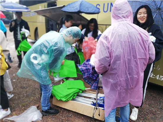 11日3日,清晨就淅淅瀝瀝下起了小雨,而且越來越大。起初我們還在憂慮,不知道大家內(nèi)心的小火苗是不是會(huì)被這雨水給澆滅。出乎意料的是,沒有人因?yàn)樘鞖庠蚨埣伲蠹叶挤浅?zhǔn)時(shí)地出現(xiàn)在集合地。