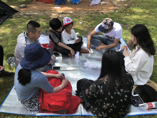 一轉眼3個小時就在歡聲笑語中度過了,吃飽喝足之后大家開始自由活動。半小時后,大家集合在一起玩狼人殺和其它棋牌類小游戲。