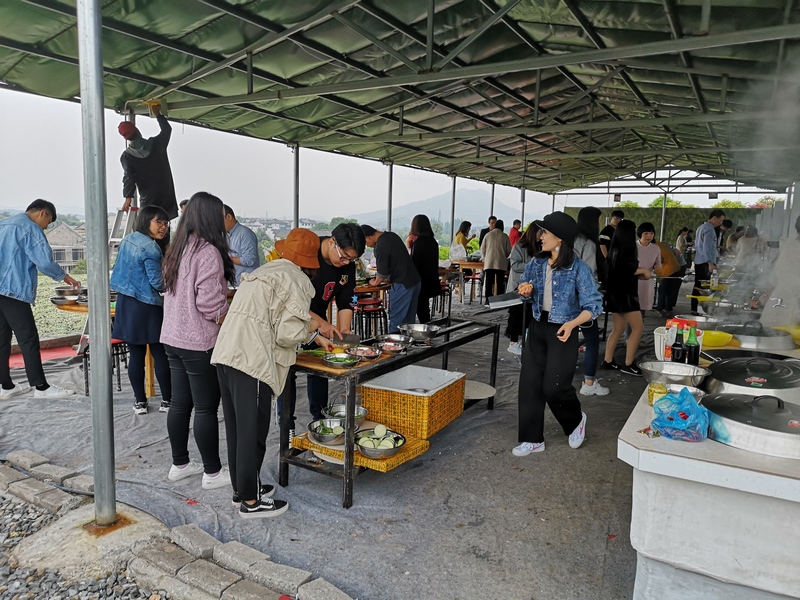 早上8點半,大家在公司集合并乘大巴前往武義桂族灣。經(jīng)過2個小時的車程,終于抵達目的地。一下車大部隊就在場地負責(zé)人的帶領(lǐng)下前往土灶。按照提前分好的小組,大家分頭開始準備午餐。為了讓同事們嘗到自己的拿手好菜,每個人在此刻都化身成了中華小當家。由于一些大神的菜品過于優(yōu)秀,一出鍋就遭到哄搶,原本設(shè)計的猜菜名環(huán)節(jié)也被省略了。