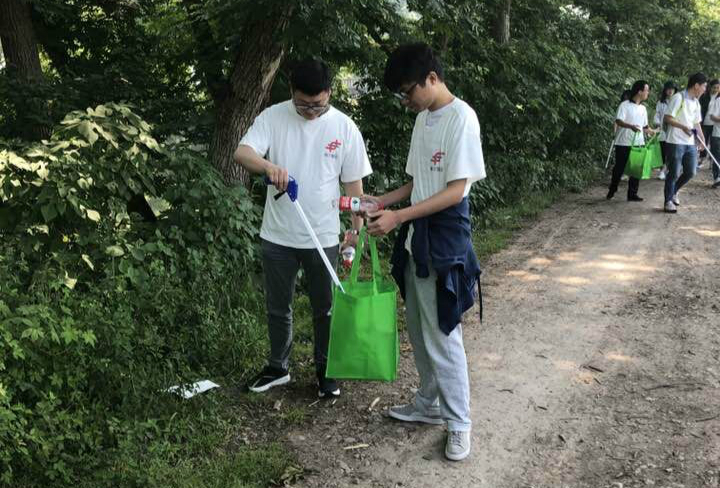 到了晴江岸之后,映入眼簾的是清澈湍流的河水、郁郁蔥蔥的大樹以及碧綠青翠的草坪,令人身心舒展、心曠神怡。而夾雜在其中的各種垃圾顯然破壞了這份大自然帶來的美景,大家紛紛拿起自己的“裝備”,將被人隨意丟棄在路邊的各種塑料袋、易拉罐、煙頭等垃圾收入“囊”中,不一會兒所有拎在手上的垃圾袋已被裝得滿滿當(dāng)當(dāng)。一路上老員工跟新員工分享著在賽爾的趣事,新員工跟老員工訴說著對未來的設(shè)想,伴隨著陣陣歡聲笑語,大家干勁十足。