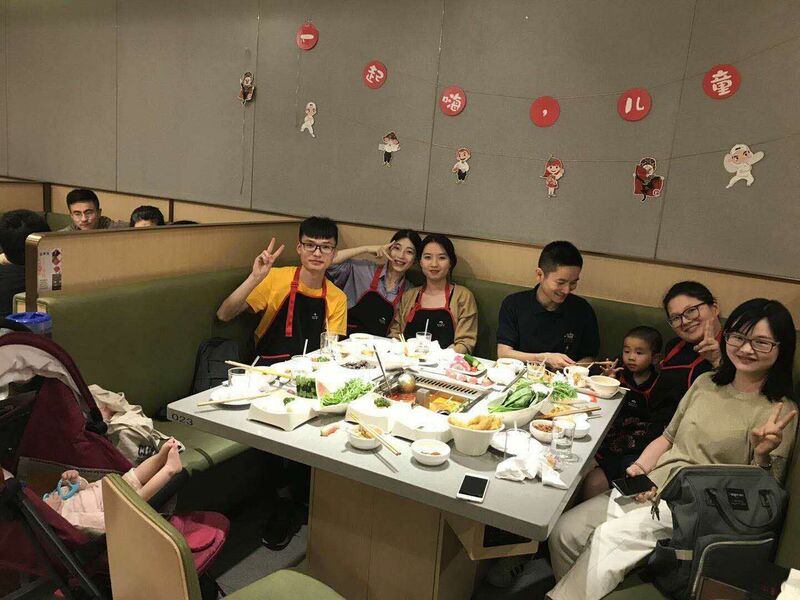 6月1日中午,優(yōu)騰AA跟AF的大寶貝們帶著小寶貝們一起早早趕赴金華吃海底撈。經(jīng)過一頓飯的功夫,我們兩組的小伙伴已經(jīng)快速地熟悉起來,再加上兩位小寶貝,現(xiàn)場歡聲笑語不斷,氣氛非常融洽。