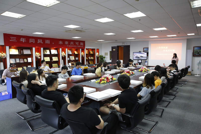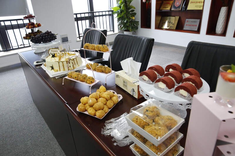 為了慶祝這一喜慶的日子,綠時(shí)舉辦了一場(chǎng)三周年慶交流會(huì)暨團(tuán)建活動(dòng)。當(dāng)天下午的交流會(huì)于寧波18樓1802會(huì)議室舉行,義烏員工以視頻方式一同參會(huì)。會(huì)議伊始,綠時(shí)為每一位員工準(zhǔn)備了豐富的水果、甜點(diǎn)和飲品,并為每個(gè)綠時(shí)人分發(fā)了帶有公司logo的小米體脂稱,真可謂“吃飽喝足干勁足,勞逸結(jié)合創(chuàng)佳績(jī)”。