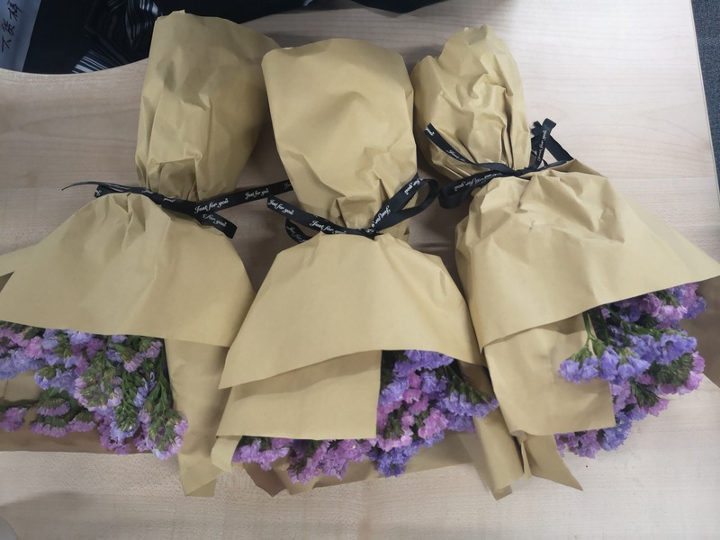 最后,我們為一年一度的秋交會開展了動員活動,此次參展在樣品數量、參展攤位數量以及參展人數上刷新了綠時記錄。公司為全體出戰的將士們準備了鮮花,預祝取得佳績,在廣交會這片“沃土”上遍地開花。