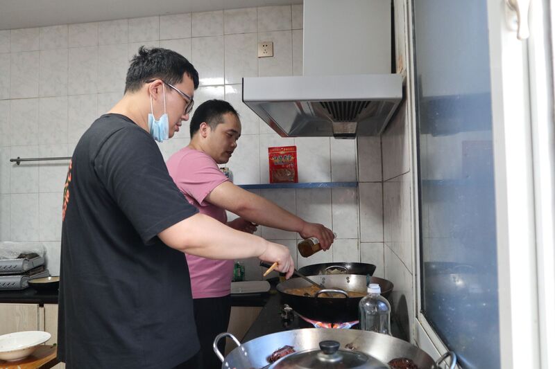 6月6日,大家依次到場地進行簽到,全員到齊后開始進行游戲。第一輪游戲是午餐大作戰,全員以抽簽的形式分成兩組進行團體小游戲競賽,贏比賽換取食材,看來想要吃到美味的午餐不是一件容易的事。每個隊伍積極比拼,最終得到了自己想要的食材,開始聯合烹飪美食。