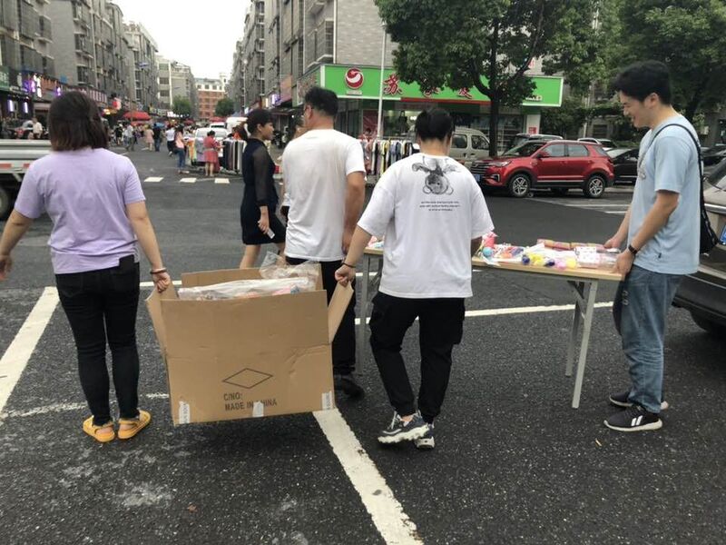 6月5日下班后,大家整理了自己覺得有賣點的樣品,去食堂借了擺臺,前往此次擺攤地點——新后傅夜市。