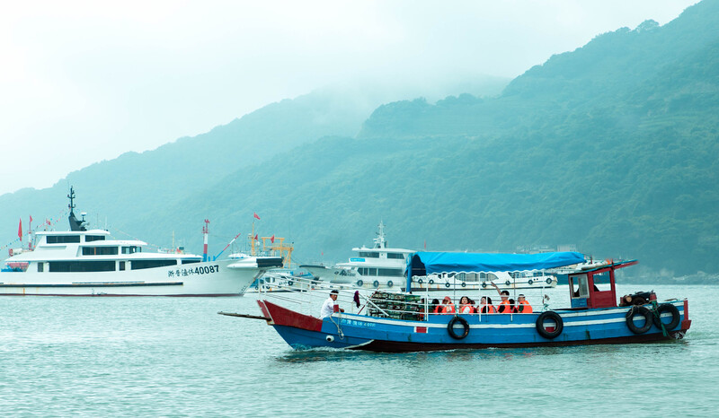 難得晨醒的我們乘坐大巴來到了聞名遐邇的“烏石礫塘”。兩條橫臥著的海塘,全由烏黑發亮的鵝卵石自然倚坡斜壘而成。大家分批乘坐漁船,吹著海風,互相歡聊,談笑風生。看著不斷來往的船只,一起享受著這份忙里偷閑的愉快時光。
