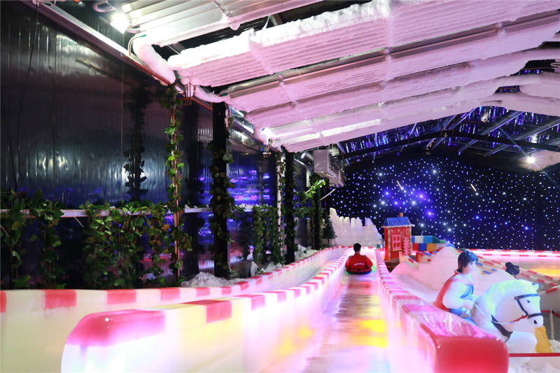 到達達人村后,大家開始步行游覽達人村。最讓人印象深刻的是冰雪王國,屋外夏日炎炎,屋內漫天冰雪,讓我們體驗了極致冰火兩重天。