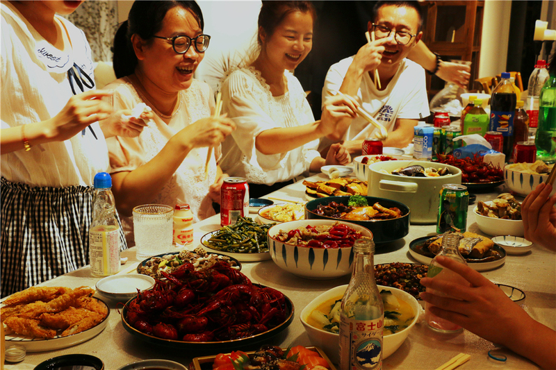 結束以后,我們在Mrs. Zhang開啟了歡樂的下午茶時光,沒有什么比在空調房里的冰飲和甜品更加使人感到快樂了。之后我們到盒馬生鮮采購了滿滿當當的食材。之后則是這次團建的重頭戲——轟趴,梭子蟹、小龍蝦、牛蛙,再配上特調的雞尾酒,我們把酒言歡,氛圍正好。