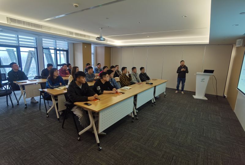 緊接著便是期待已久的培訓班第一節開山課程,邱濤總監為新學員們進行了公司結構、客戶基本情況和業務操作流程的詳細講解,讓學員們對于即將迎來的工作內容有了全面的認知,并能夠以最快的速度融入公司。