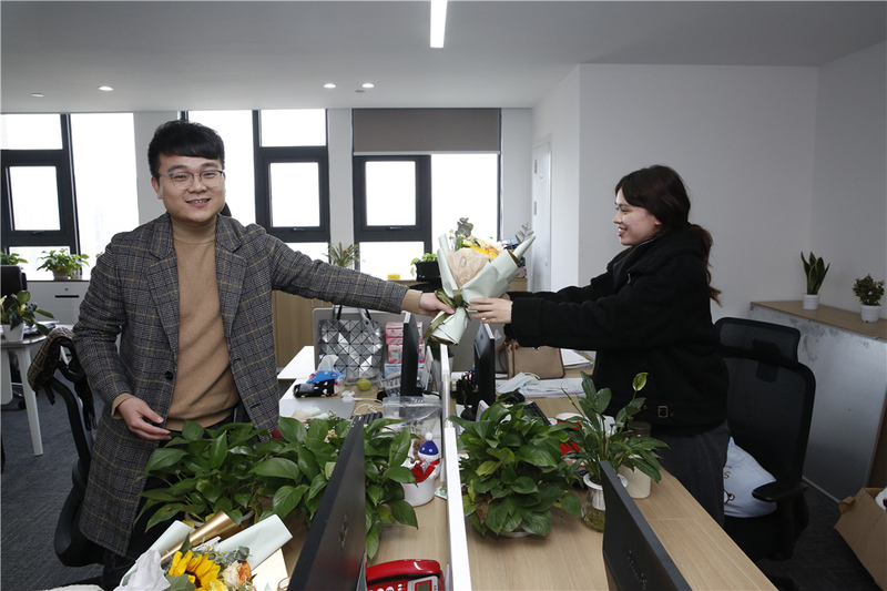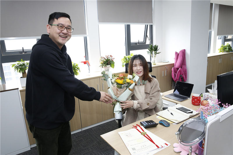 在女神節(jié)這個特殊的日子里,綠時為每一位女生都送上了最真摯的祝福。隨著公司里響起了《我是女生》的活潑旋律,男生們拿著鮮花出現(xiàn)了!
