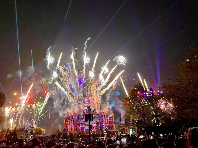 在夜晚觀賞一場煙火秀是迪士尼的必選項目,看著五彩的煙花在天空中綻放,彼時彼刻的心靈得到了治愈,一天的疲憊感也在這一瞬消散。
