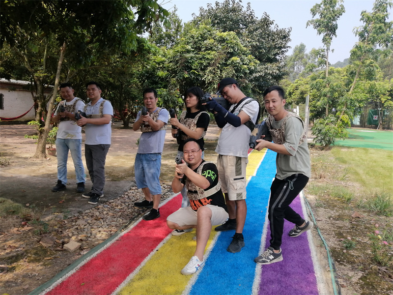 一大早,大家集合完畢,整好好行裝便興致高昂地前往彩樂時光團建基地。經過25分鐘的車程到達基地,大家稍作休整之后,團建基地教練帶領大家拍攝集體照。隨后教練將參與人員分為2組,分別由張軍和劉爽帶隊,豐富多彩的團建比拼隨即拉開帷幕。
