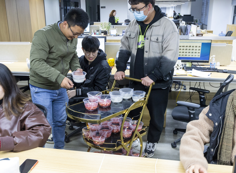12月21日,恰逢冬至,優(yōu)遠(yuǎn)公司總經(jīng)理邵紀(jì)銀為整個子公司的同事們都準(zhǔn)備了一份貼心小禮物。當(dāng)天下午,樓道間突然響起了《賣湯圓》的歌謠,循著歌聲望去,映入大家眼簾的竟是小推車推上來的一份份熱氣騰騰的湯圓。對于意外收獲這樣一份小驚喜,在座的同事難掩心中的喜悅,紛紛表示很貼心、很用心。“圓”意味著“團(tuán)圓”、“圓滿”,在冬至吃湯圓又被稱為“冬至圓”,禮物雖輕,但這其中飽含了公司領(lǐng)導(dǎo)對于所有同事美好的祝愿與關(guān)懷。