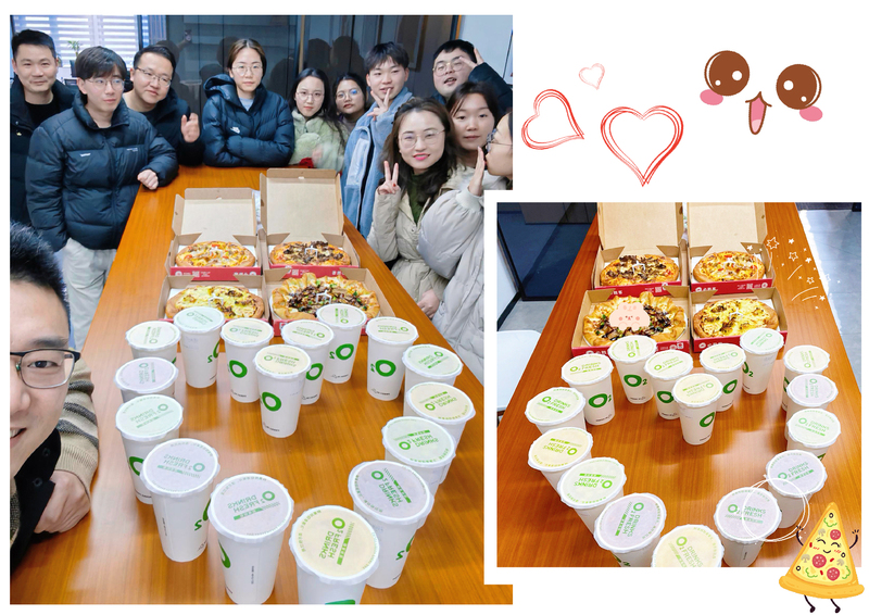 所有綠時(shí)業(yè)務(wù)一部員工來到茶水間,陽光恰到好處地照在大家臉上,每個(gè)人臉上洋溢著喜悅,工作熱情迅速都被調(diào)動(dòng)起來。大家喝著鮮榨果汁,吃著披薩,共同慶祝部門成果,并暗自下定決心為新的目標(biāo)努力。桌上的下午茶代表著今年新的開始,整個(gè)部門都干勁滿滿,充滿著對(duì)新的一年的期待。