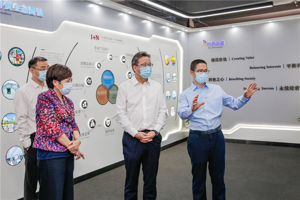 在企業文化展廳,徐平炬總裁簡要介紹了企業發展歷程、業務生態、數字化建設和企業文化等基本情況和具體做法,卞吉安部長對集團25年以來的發展變化和取得的成就表示肯定和贊賞。