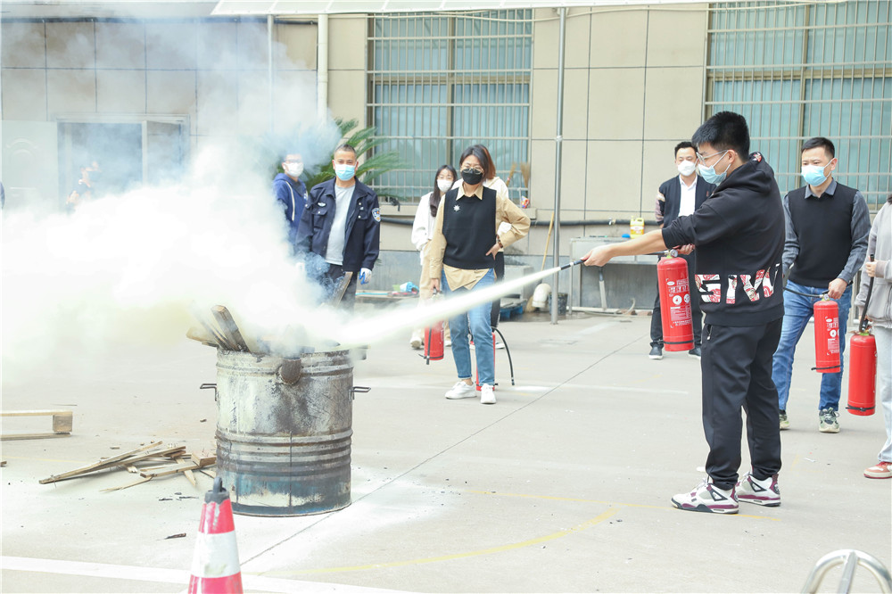 培訓(xùn)結(jié)束后,兩地參訓(xùn)人員進(jìn)行了火場(chǎng)逃生演習(xí)。隨著人工煙霧逐漸彌漫,火警鈴聲響起,員工們依照培訓(xùn)內(nèi)容,用濕毛巾或手掩住口鼻,彎腰低伏,沿著墻根依次逃離火場(chǎng),一位參訓(xùn)員工“逃”出“火場(chǎng)”后表示,第一次知道人在無(wú)毒害煙霧中會(huì)這么不舒服,因此火災(zāi)預(yù)防和應(yīng)對(duì)真的很重要。來(lái)到樓下空地后,參訓(xùn)員工在講師和工作人員耐心指導(dǎo)下更加專注地進(jìn)行滅火器實(shí)操演練,并紛紛表示會(huì)向周?chē)丝破障腊踩WR(shí)和技能。