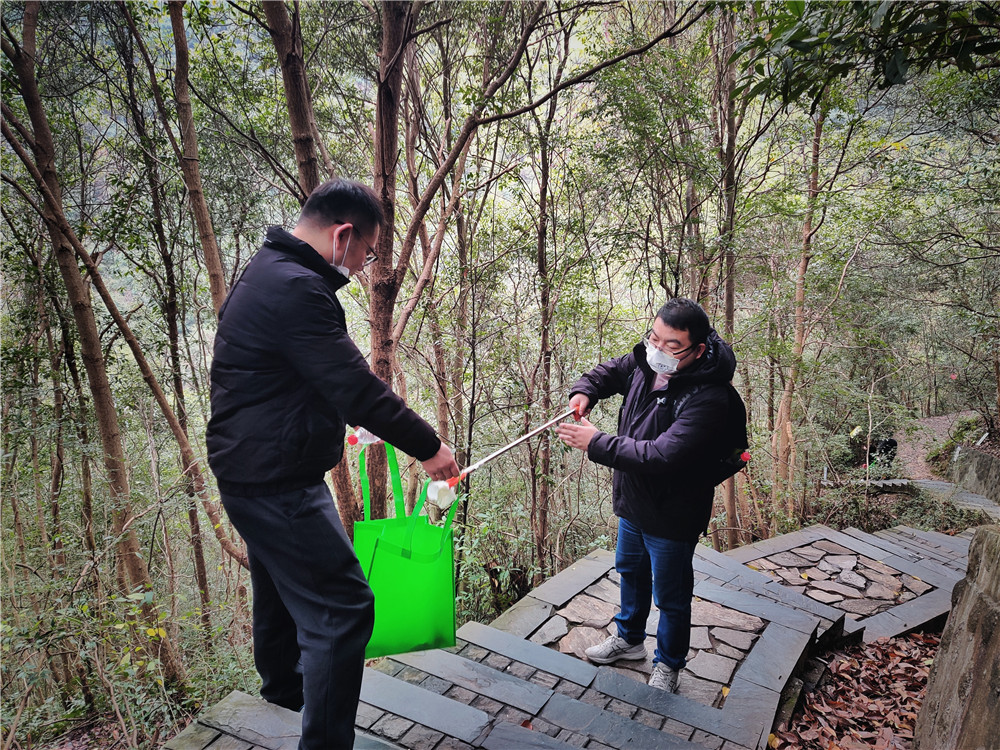 到達龍觀鄉后,小伙伴們開始了"山野清風"大比拼。大家一邊欣賞沿途的風景,一邊將垃圾撿入“囊”中。