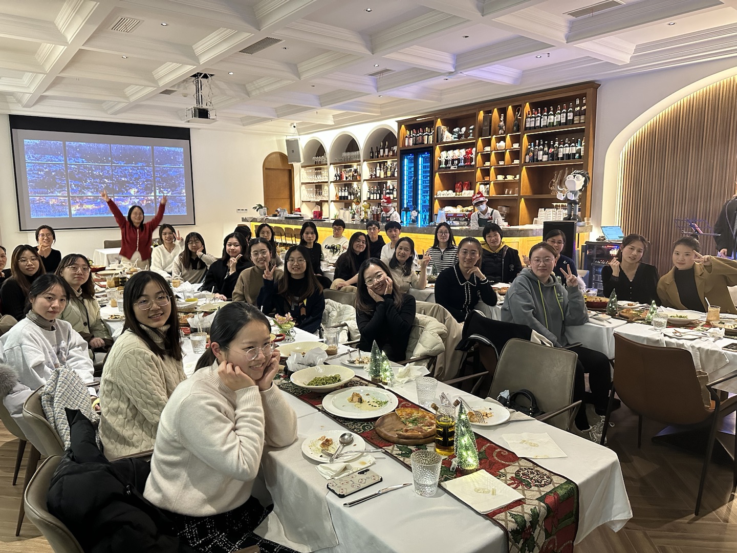 歲末鐘響,圣誕氣氛漸濃,雖然精心策劃的小劇場活動因為疫情原因不得不取消了,但是我們的好心情絲毫沒有受到影響,結(jié)束了一天的工作,大優(yōu)勝財務(wù)小伙伴們一起前往Ginkgo西餐廳共進晚餐。一進入餐廳內(nèi),大家就被餐廳內(nèi)布置的圣誕裝飾吸引,這里環(huán)境幽靜,伴隨著輕音樂,忙碌了一天的身心也在此刻被瞬間治愈。待全部人落座后,駐唱小哥哥為我們帶來了一首首美妙的歌曲。