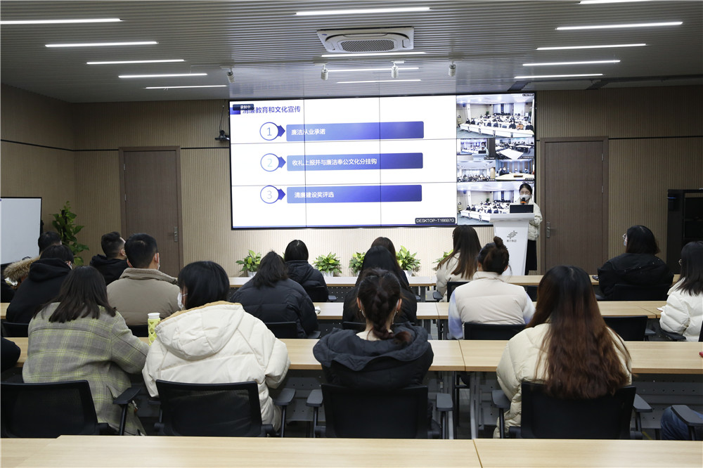12月20日,為進一步開展清廉教育,宣傳廉潔奉公文化,引導公司員工遵守集團各項規章制度,自覺抵制見利忘義、損公肥私、欺騙欺詐等消極腐敗現象,集團清廉建設委員會牽頭組織寧波、義烏和杭州三地連線召開了一場公司廉潔奉公座談會。本次座談會由清廉建設委員會副主任朱玲總主持,風控審計部法務袁夢思主講,共有79位來自集團各子公司和職能部門不同崗位不同年限的員工參加。